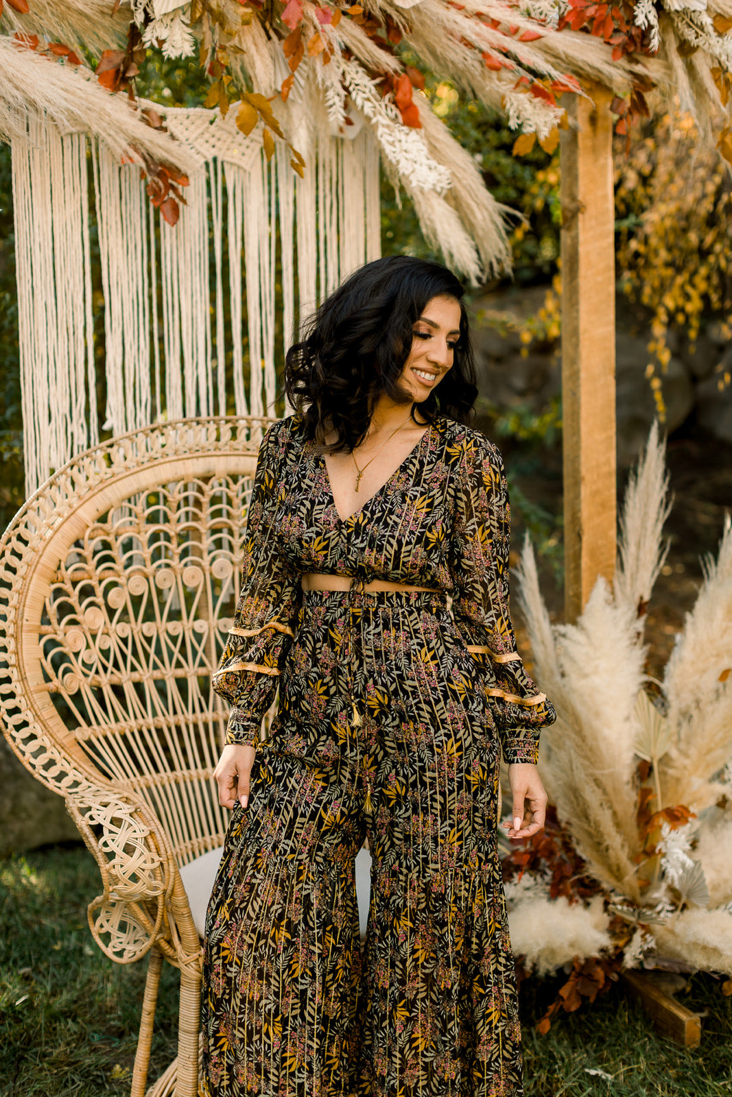 Glorious foliage comes alive on a solid base in the Baizah Set. Featuring delicate gold threads all over a V-neck crop top and sharara style pants, the Baizah Set is perfect for everything from intimate dinners to casual outings and can be worn as is, or mixed and matched with other pieces from your wardrobe.